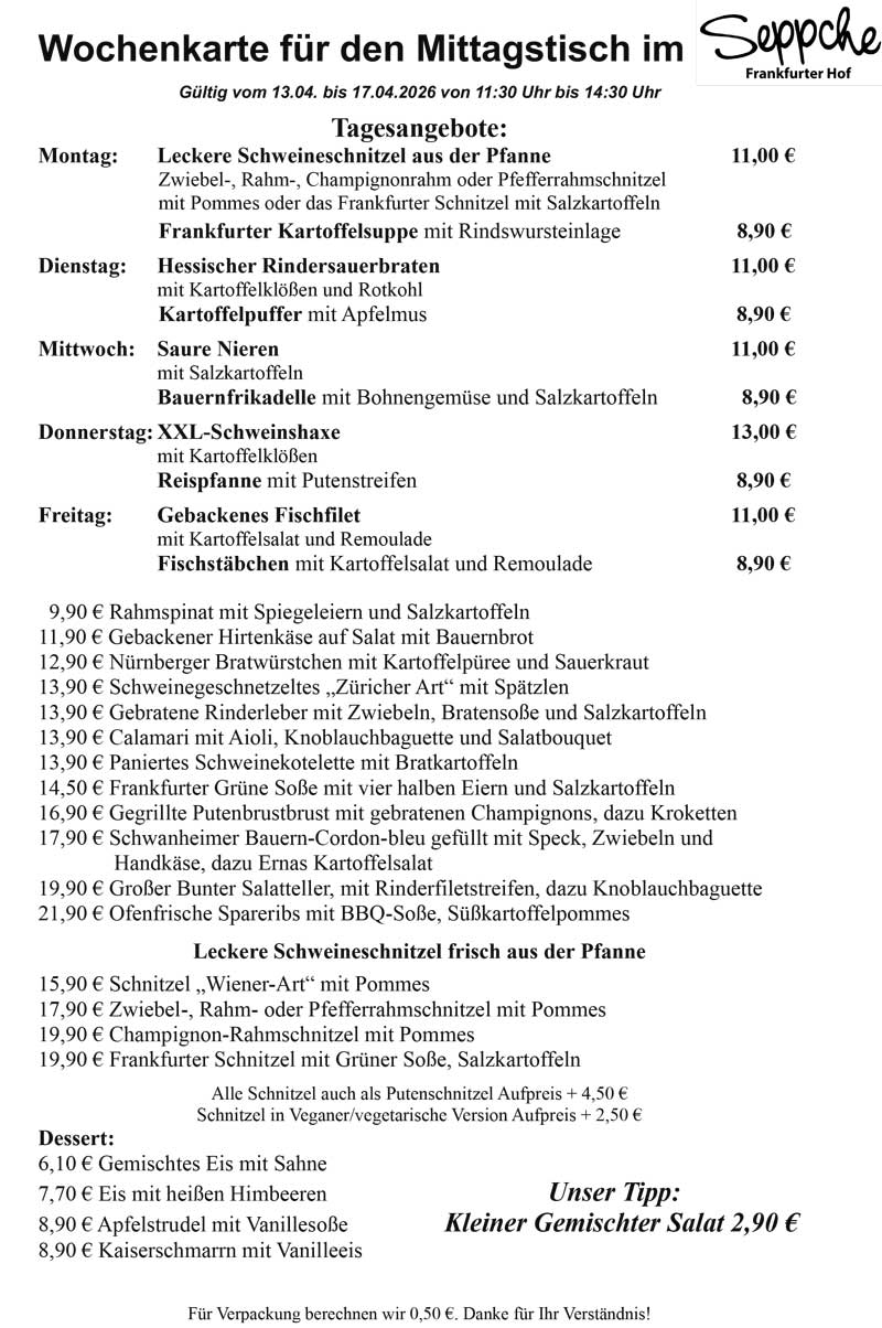 Herzlich Willkommen im Frankfurter Hof „Seppche“